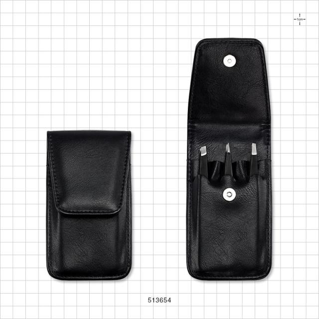 This 3-piece stainless steel tweezer set includes a point tip, slant tip and flat head tweezer, which are all perfect for grooming eyebrows. Stored in a stylish black case with snap closure, this set is ideal for travel and can also be sold at retail or offered as a promotional giveaway.