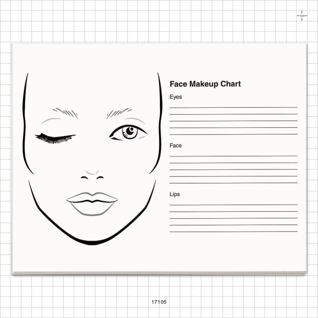 Plan out makeup looks or educate students and clients about makeup application and color concepts with this 50-page face chart pad. The textured paper tears off easily, holds powder and liquid cosmetics and shows the true pigment of the product.