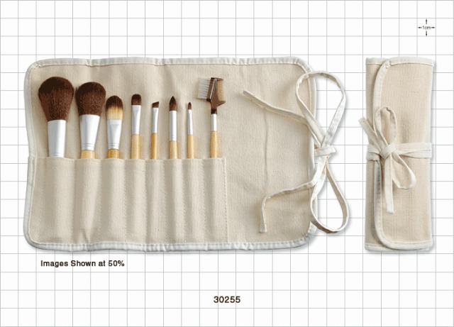 For an environmentally friendly option, select this luxurious 8-piece synthetic brush set with convenient hemp/cotton pouch. This versatile set can be sold at retail, used as an essential item during makeover consultations or offered as a promotional giveaway. Each brush was selected for an important step in the make-up application process.