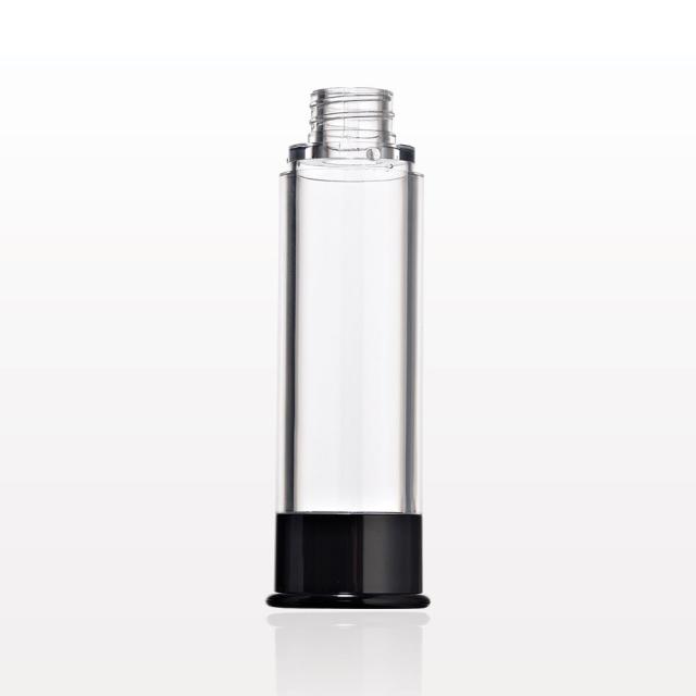 Help maintain efficacy of lotions and liquid cosmetic and skin care formulations with this clear 20 ml airless bottle with black base. The corresponding airless pump mechanism (Part #29941) dispenses just the right amount of product every time.