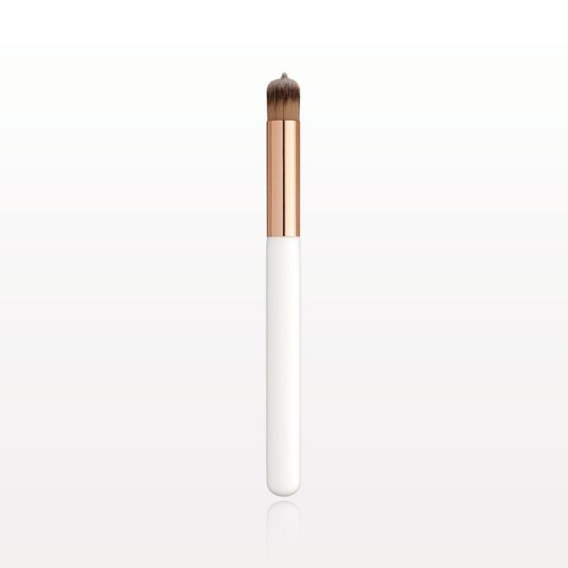 This professional, patented makeup brush with matte white handle from our “Tip and Blend" collection is ideal for contouring under the eyes. Dip the tip of the brush into your cream product and deposit the color by dotting the product where you want it. Blend with the same brush.