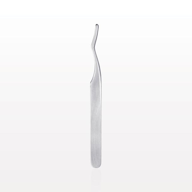 Apply eyelash extensions, individual or strip lashes with this stainless steel curved eyelash applicator. Pick up the lashes between the curved tips and gently pull away from the tray. Apply glue and place at the lash line. This item is also ideal for nail art application.