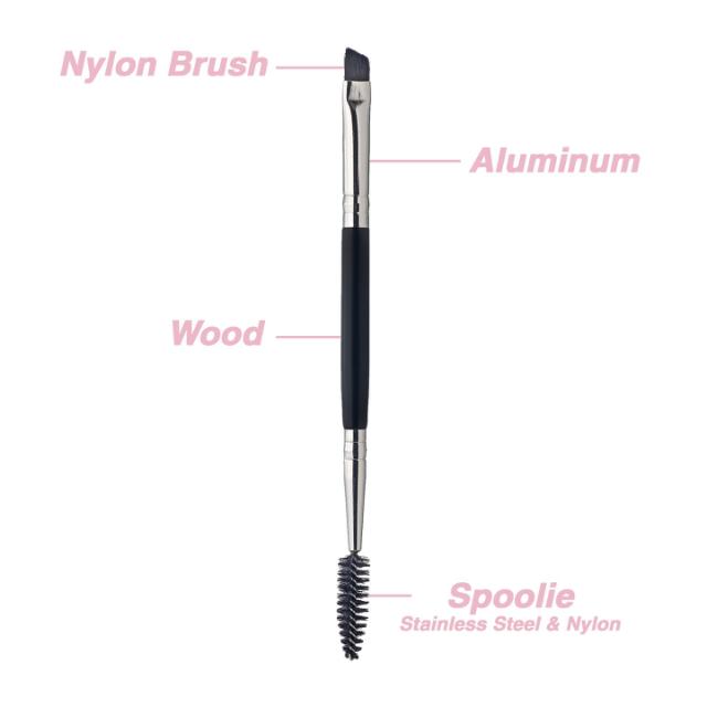 This convenient dual ended brow brush has an angled nylon brow brush on one end and a spoolie on the other. The angled brush is perfect for precisely filling in arches, creating lines and contouring brows, while the spoolie can be used for grooming and combing hair into place.