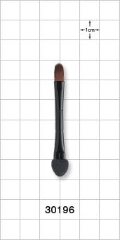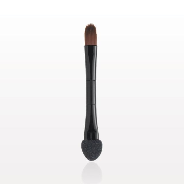 This dual ended disposable applicator with black polystyrene handle features a nylon lip brush on one side and a foam eye shadow applicator on the other. Also can be included in a retail compact that contains both eye shadow and lip gloss.