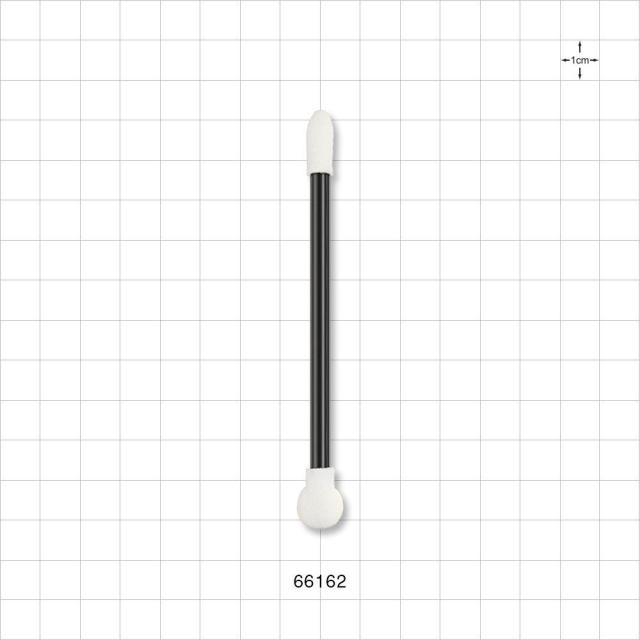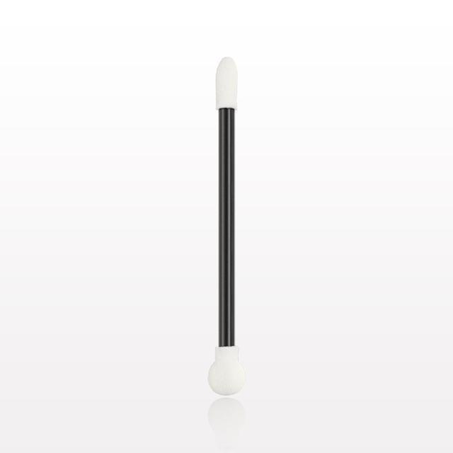 This dual ended disposable eye shadow applicator features point and round polyurethane foam tips and a black polypropylene handle. Perfect for use in a retail setting to help maintain hygienic testing practices.