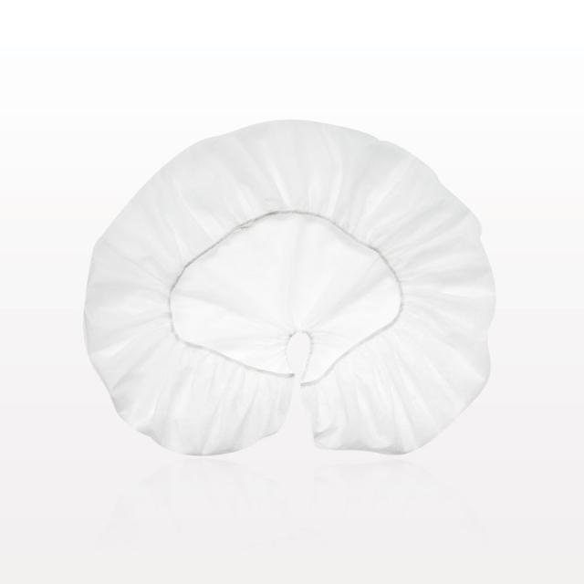Help protect your massage table or chair with this disposable face cradle cover. The cover provides a comfortable and sanitary place for your clients to rest their faces, reducing the risk of cross contamination. Made of soft, non-woven polypropylene that is gentle to the skin, the cover has an elastic band that holds it in place.