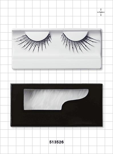 These black false eyelashes with rhinestones are great for special occasions. Perfect for resale, the lashes lie nicely in a white tray and come packaged in a black box with peek through window.