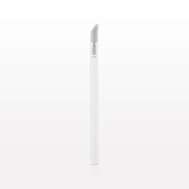 This disposable flocked lip gloss applicator with clear polystyrene handle is perfect for testing lip gloss in a retail setting.