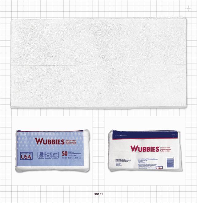 Beauty professionals can maintain a hygienic work environment with these all-purpose 2-ply Wubbies® Embossed disposable salon towels. Absorbent and durable, they make the perfect liner or protective mat for work stations and can be used for cleanup. These towels can also be utilized during hair color/treatments to protect your client’s skin or clothes. Made in the USA.