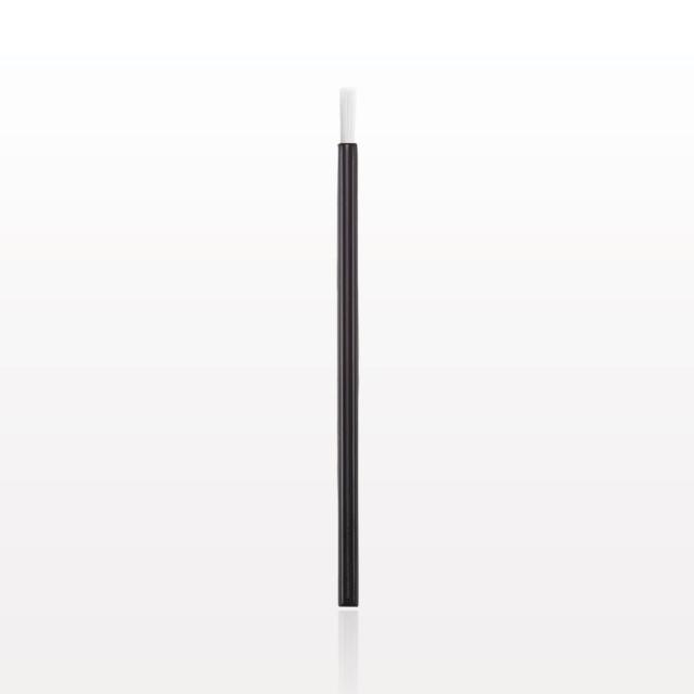 This single-use lip brush applicator with black handle and white nylon tip is perfect for testing lip gloss or lipstick in a retail setting. The bristles are ultra-sonically bonded inside the handle without adhesives to help ensure that the hairs remain in place, preventing shedding during use.