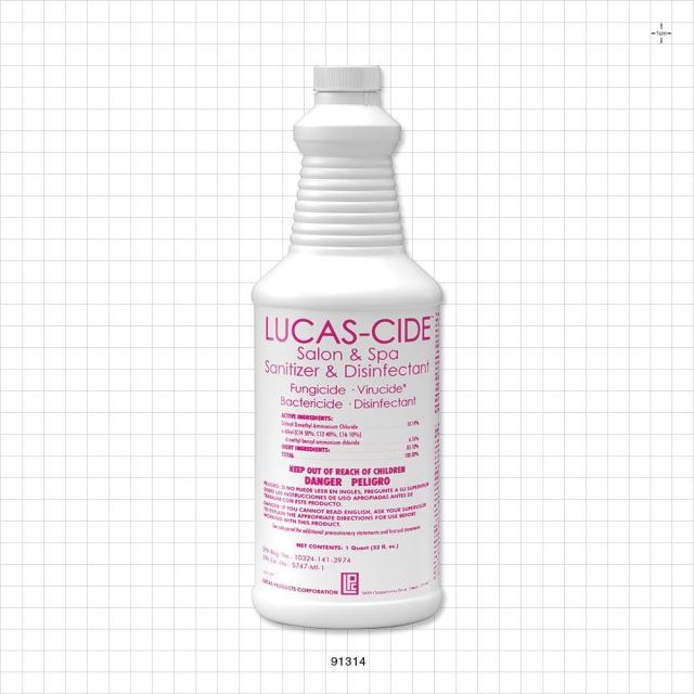 LUCAS-CIDE™ Salon and Spa Hospital Grade Sanitizer & Disinfectant kills 99.9% of bacteria, viruses, and fungus in 60 seconds. 100% kill rate in 10 minutes. Perfect for use on any nail implements, pedicure spas, combs, shears, massage tables or any other hard, non-porous surface. Mix 1/2 ounce to a gallon of water. EPA Approved. CAUTION: Keep out of reach of children.