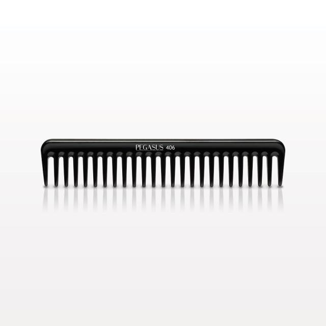 This wide tooth styling comb is a must-have for any professional styling kit. Designed with widely spaced teeth, this comb is ideal for thick, curly, or tangled hair. This style comb detangles knots easily and effectively, without losing a lot of hair. It also works great on clients with damp or wet hair. Crafted with Flexinite Technology, this comb is sensitive to changing temperatures so the perfectly rounded teeth mimic hair and move flexibly, expanding when treated with heat during styling. Includes measuring marks for added convenience.