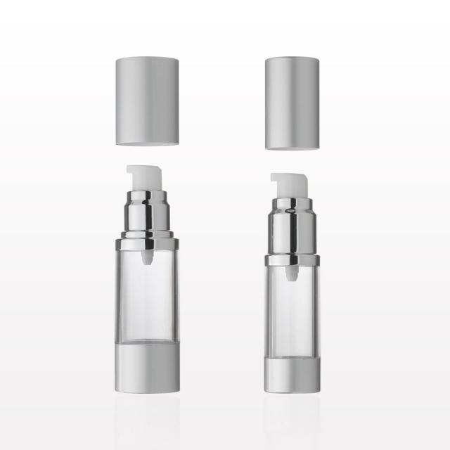 Platinum and Clear Airless Bottle with Pump and Overcap
