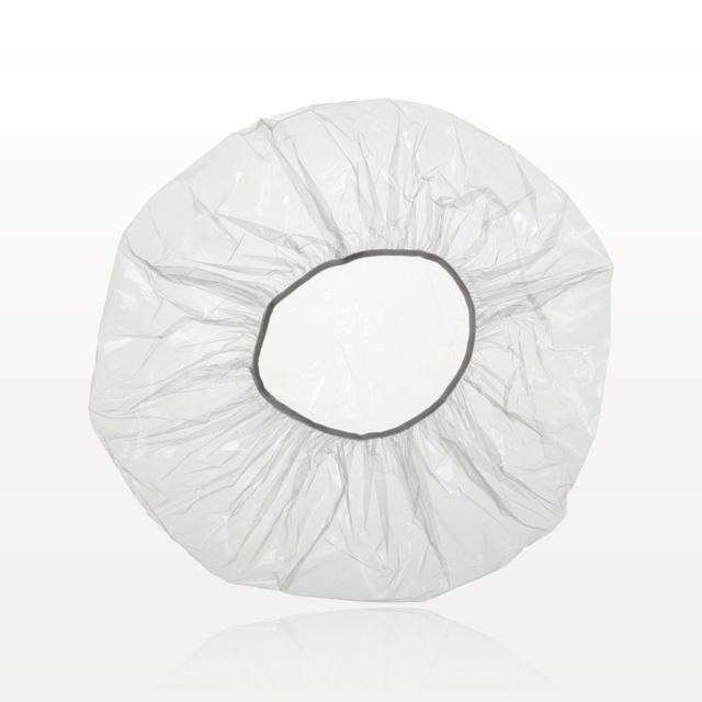 This clear PE processing cap can also be offered as a disposable shower cap. The cap provides full coverage and has elastic to help keep it in place.