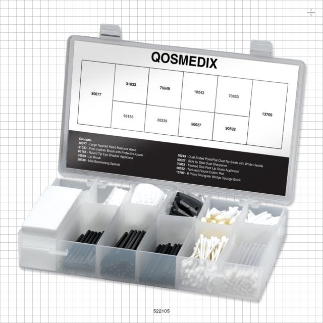 With the professional makeup artist in mind, this well-organized essential makeover supply kit contains all the necessary disposable makeup applicators to maintain a hygienic environment for clients. The supplies lay nicely inside this 10.5 inch x 6.19 inch x 1.56 inch beauty supply organizer with adjustable partitions. The lid seals with two clasps to keep items from spilling during travel and making it is easy to store. This kit includes a sharpener, point/flat tip swabs, eye shadow and lip gloss applicators, lip and eye liner brushes, mascara wands, boomerang spatulas, a latex-free sponge block and round embossed cotton pads.