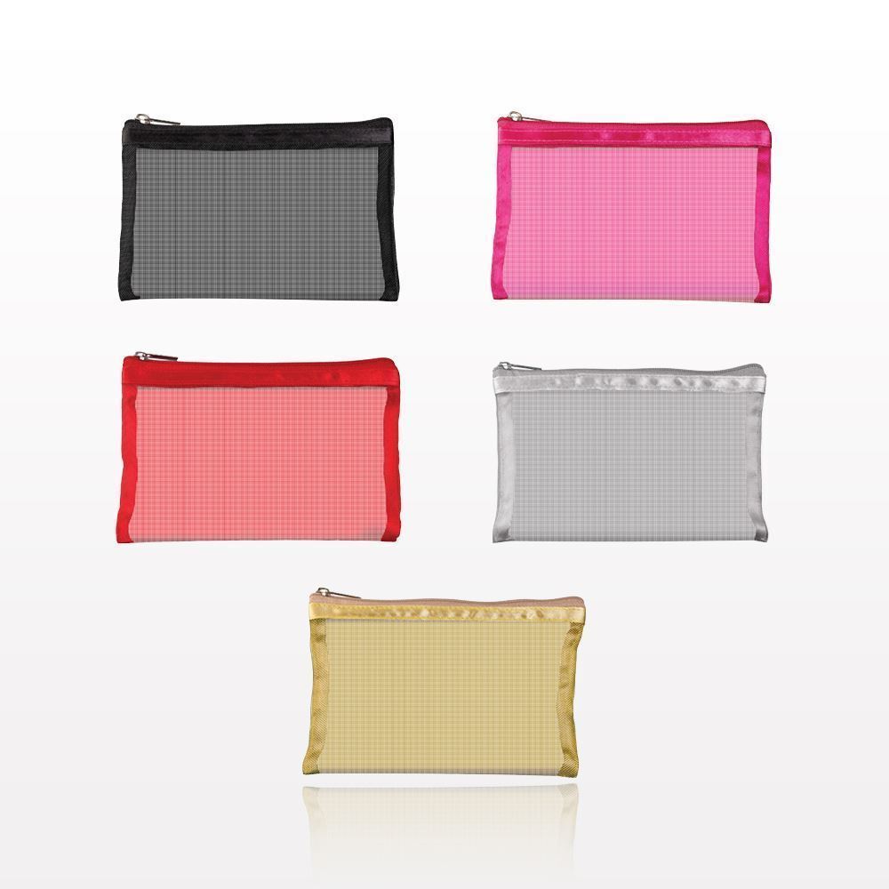 Perfect for packaging samples, creating promotional giveaways or for retail sale, this small black mesh pouch with zipper closure is just the right size for a few essential makeup or skin care must-haves.