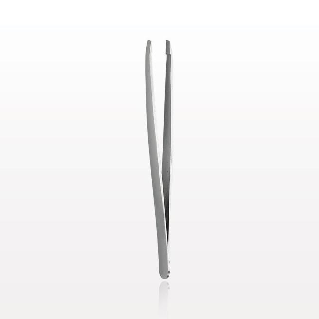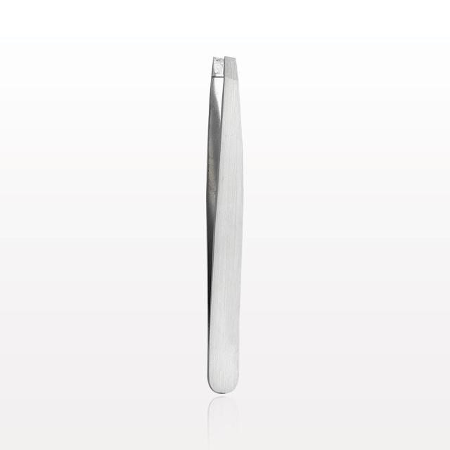 These slanted stainless steel tweezers are perfect for precise face and body hair removal.