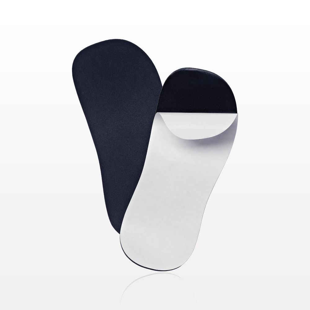 These strapless sandals with adhesive backing are designed to help protect the soles of the feet during spray tanning sessions. To apply, simply remove the adhesive backing and step firmly on the foot pad. May also be used to help protect feet at health and fitness clubs, during pedicure treatments and at airport security checkpoints.