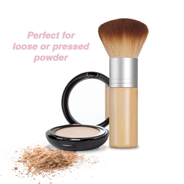 Apply bronzer, blush, loose or pressed powder with this stylish two tone kabuki brush that has a long bamboo handle. Just swirl the brush head in the formula, tap off excess product and gently use in circular motions on the face or body.